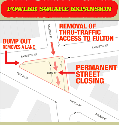 This proposal is a waste of time and money and will only cause more problems for our already-congested area. The Fulton Area Business Alliance wants to spin this as creating an exciting new urban space – an idyllic "Gateway to Fort Greene." To us civilians on the ground, it's just another STREET CLOSING AND LAND GRAB* – on an essential through-street. The plan must not be allowed to come to fruition.